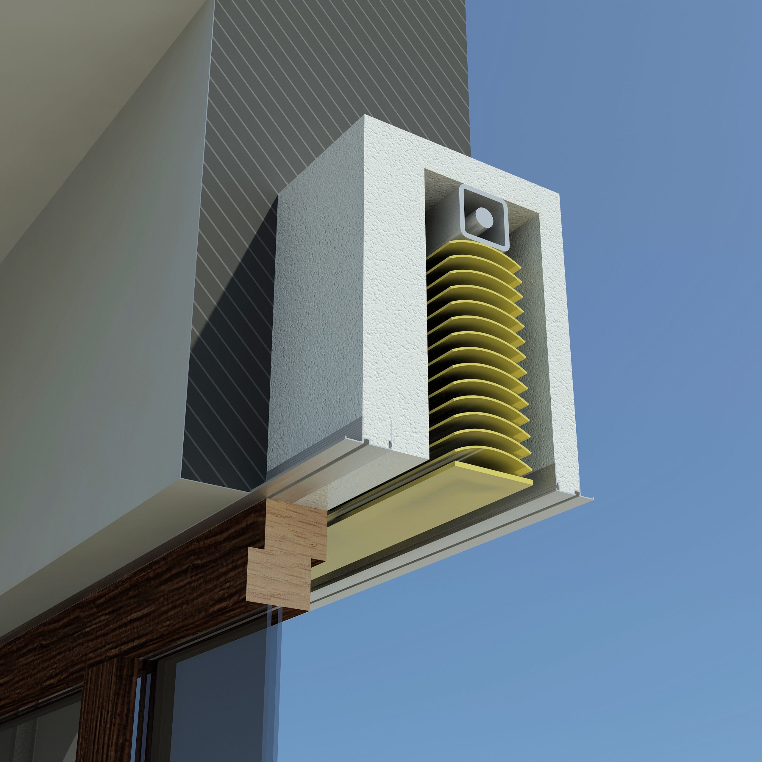 Soluzione di cassonetto a scomparsa per qualsiasi tipo di frangisole esterno.
