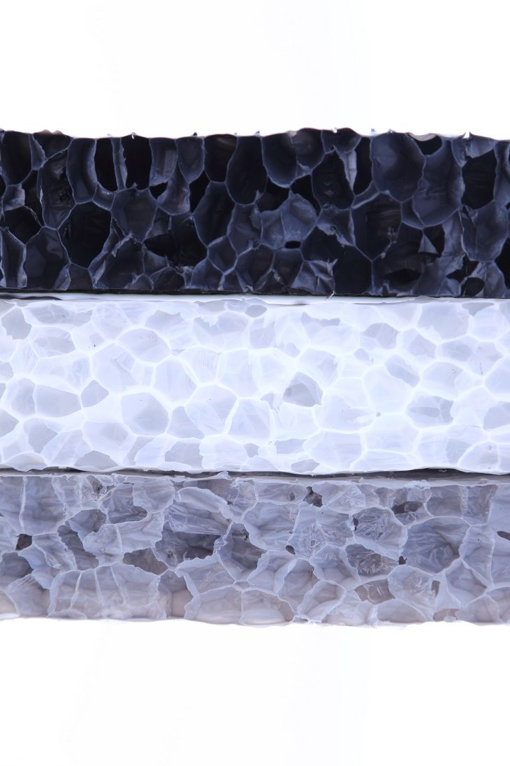 Rivestimento con decoro e fondo champagne composto da formelle 60×60.