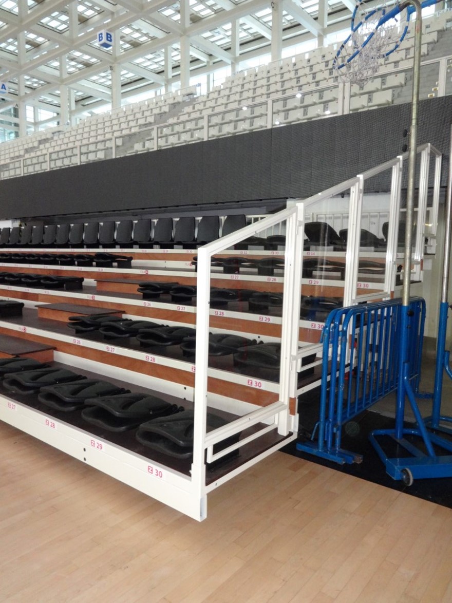 Autoportanti, si costituiscono di sedile e schienale con superficie a vista goffrata, ottenuta attraverso fotoincisione sullo stampo. Il ribaltamento dello schienale avviene manualmente. Negli stadi e nei palazzetti, le sedute vengono applicate mediante telaietti in acciaio direttamente sulla pedata oppure sulle tribune telescopiche. Le parti in acciaio sono normalmente verniciate in nero con polveri epossidiche.