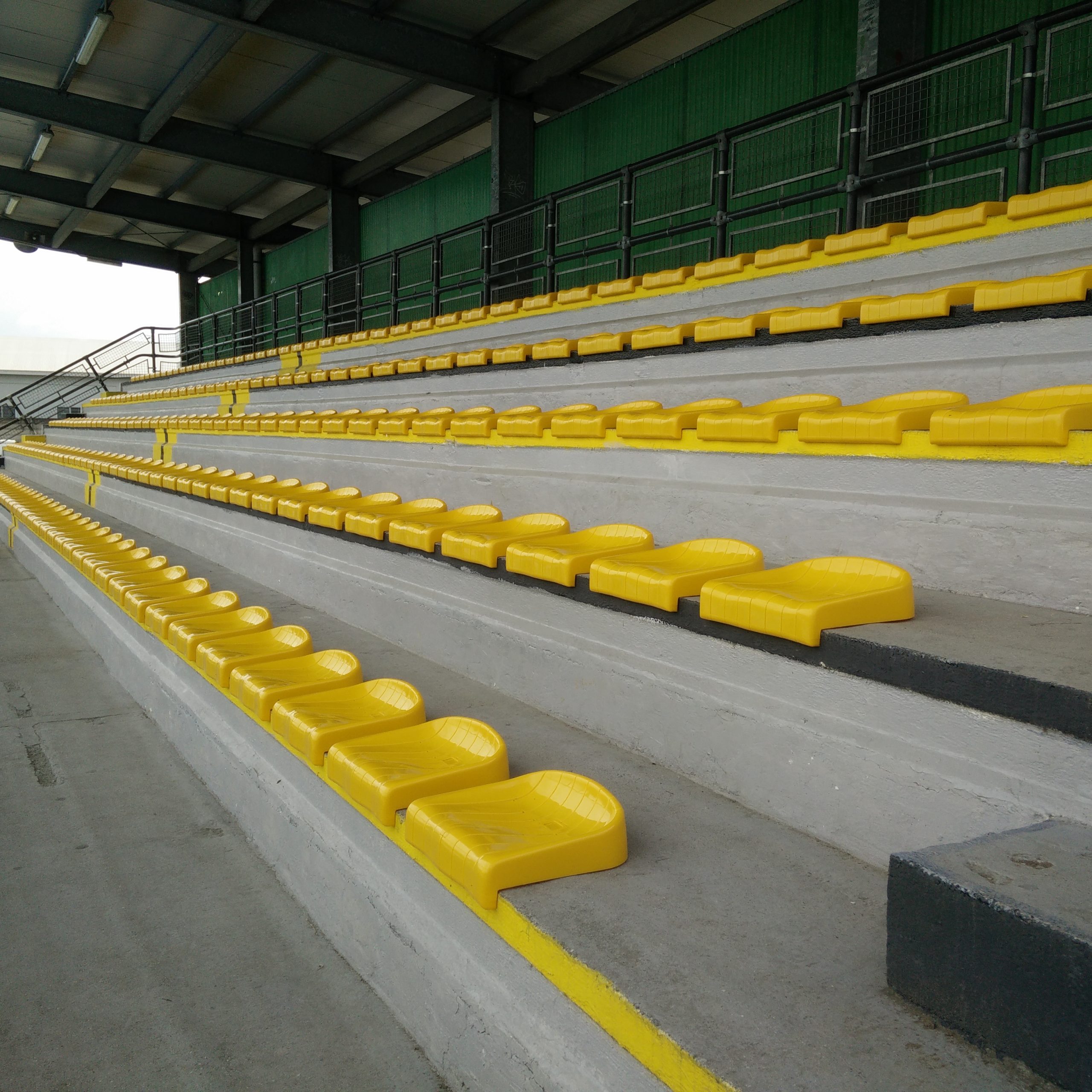 Qualora i gradoni abbiano un’alzata troppo ridotta, vengono applicate su travi in acciaio, corredate di montanti e apposite basette di fissaggio alla pedata. Le eventuali parti metalliche vengono fornite zincate a caldo o, in optional, verniciate con polveri epossidiche.