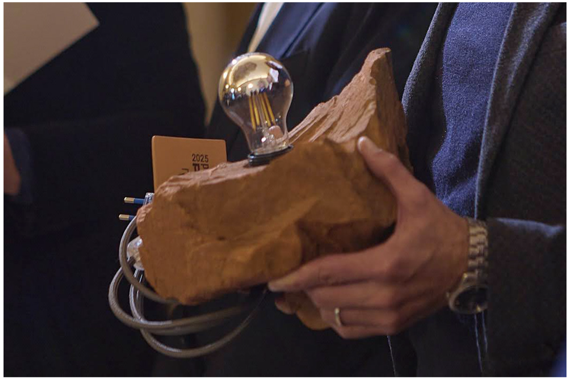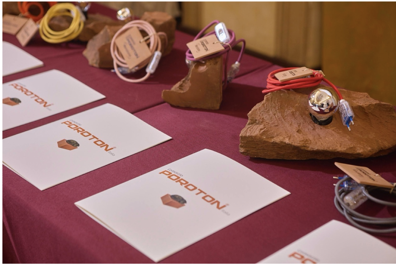 Oltre al premio in denaro, a Vincitori e Menzioni è stata consegnata la “Lampada Zolla”, un oggetto di design della collezione Fornace & Officina realizzato dal Munlab in versione speciale per il PREMIO POROTON ® 2025. L’opera nasce da un blocco di argilla estruso che, essiccandosi naturalmente, crea spacchi unici, simboleggiando il legame indissolubile tra materia prima, processo industriale e creatività artistica.