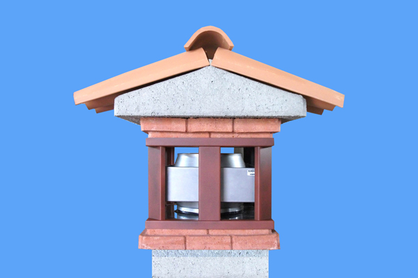 E’ un comignolo da considerare ANTISISMICO perchè, può utilizzare una canna fumaria che sporge dal paino del tetto con lunghezza di circa 50/60 cm, senza pregiudicarne l’efficienza.