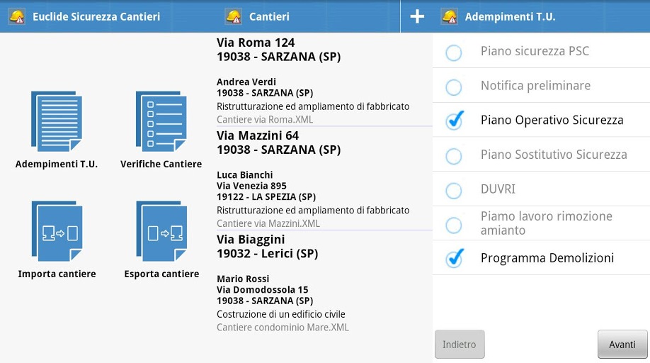 Euclide Sicurezza Cantieri comprende in un unico pacchetto tutte le seguenti funzionalità: