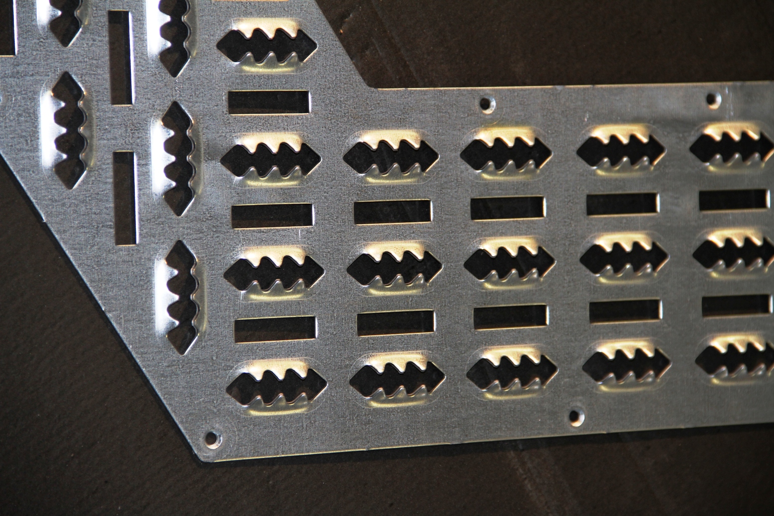 CMM realizza lamiere e gradini antiscivolo di qualsiasi forma. La lavorazione avviene mediante le punzonatrici a controllo numerico e le piegatrici. L’azienda offre una grande libertà ai progettisti in quanto riesce a realizzare lamiere senza limiti geometrici dati dagli stampi di tranciatura. Le forme possono essere disegnate direttamente dal progettista.
