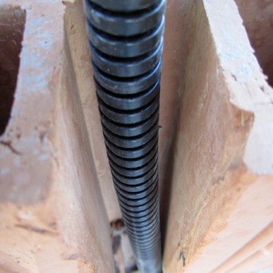 La parete costituita con blocco acustico 30x30x19 è stata provata inizialmente priva di reti impiantistiche e in seguito sono state inserite reti elettriche.