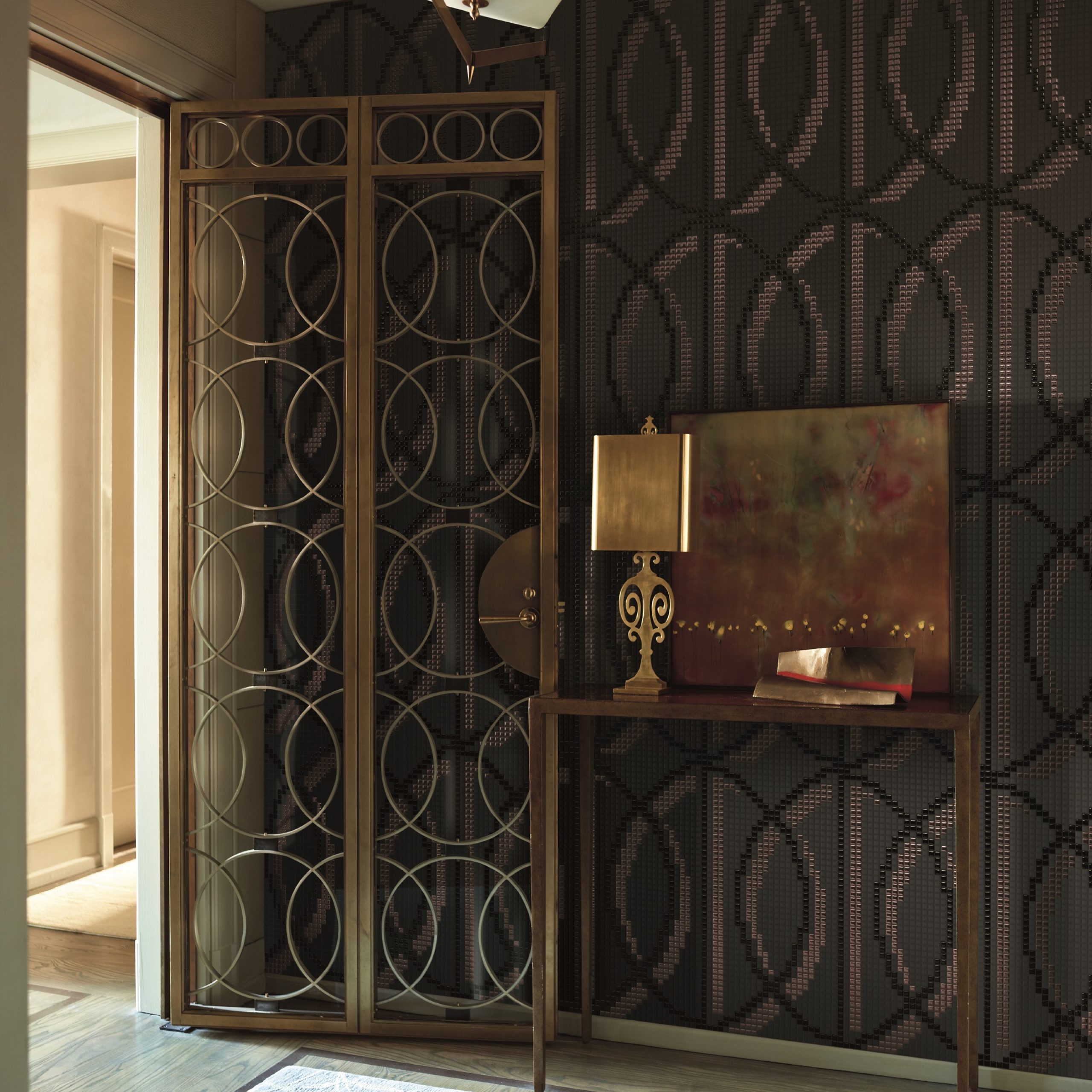 In apparenza sono la ricorrenza periodica, il flusso regolare e armonico degli elementi geometrici a dettare il ritmo di Metrica.In realtà, la modulazione è sottile, intermittente, imprevedibile: la linearità della geometria si interrompe e si movimenta con battute e cadenze, fatte di luce e colori. I 4 decori di Metrica, declinati in 4 varianti di colore, infatti, derivano il proprio nome essenziale ed esplicito – Cerchi, Incroci, Trattini, Parallele – dalle geometrie che si vengono naturalmente a creare affiancando tra loro più moduli. Accostando i moduli Cerchi si ottiene una circonferenza; reti e intersezioni sono generate dai moduli Incroci; i moduli Trattini e Parallele, infine, compongono un movimento di rette, parallele, angoli.