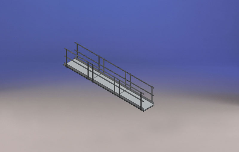 Le passerelle possono essere progettate su misura in base alla lunghezza richiesta. Possiamo progettare dei punti di fissaggio ad hoc adatti al tipo di appoggio e a superfici sia piane che inclinate (appoggi anche a parete). Le passerelle non sono progettate per installarvi sistemi anticaduta con linee vita.