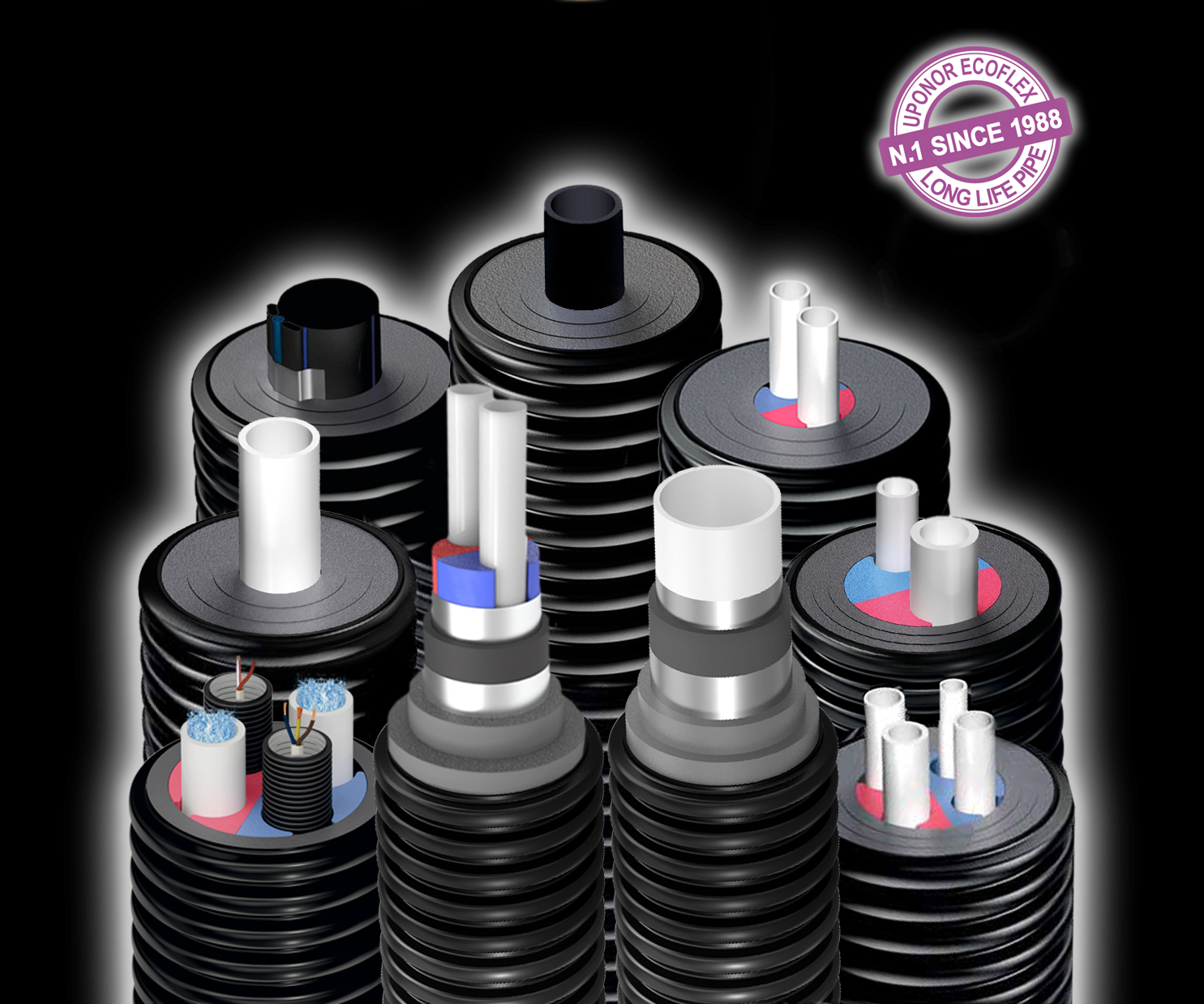 Il sistema Uponor Ecoflex è progettato per realizzare reti di distribuzione interrate per il trasporto di acqua calda, fredda, refrigerata, potabile, acque reflue e altri liquidi, nelle più svariate applicazioni, il teleriscaldamento e l’industria.